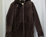 Excellent Condition St. Johns Bay Dark Brown Suede Leather Shearling Lined Hooded Jacket - Women's Tag Size S. Actual measurements: 42" chest, 30.5" length. Fits like a Medium.