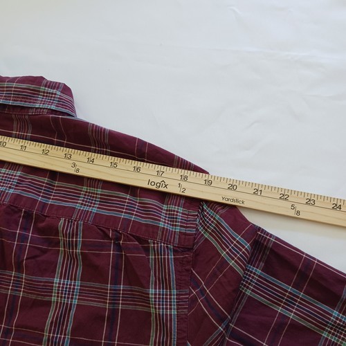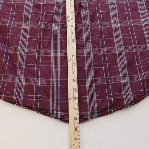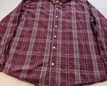 St. Johns Bay Men's Button Down Collared Shirt Burgundy Plaid Comfort Stretch L