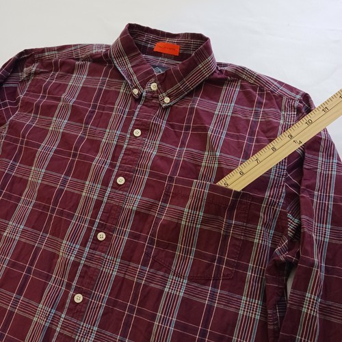 - St. Johns Bay Men's Button Down Collared Shirt Burgundy Plaid Comfort Stretch L