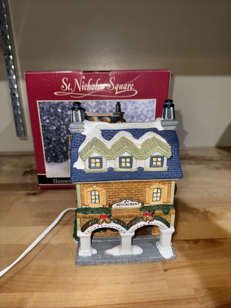- St. Nicholas Square Hansen’s Restaurants Illuminated Christmas Village W/ Box