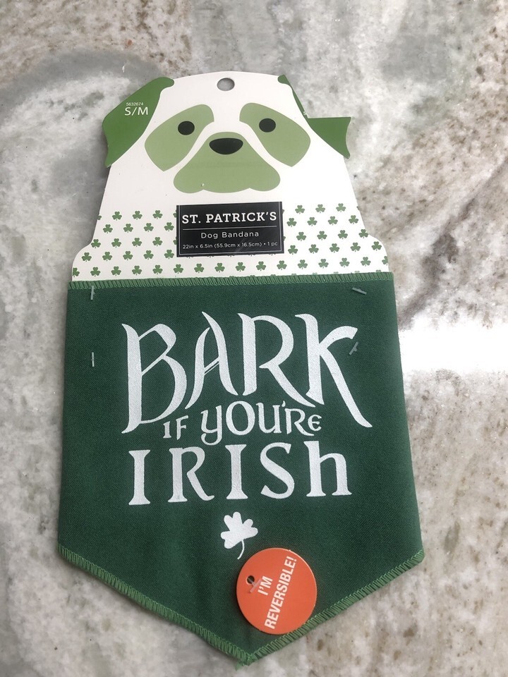 - St. Patrick’s Day-Bark If You Are Irish Dog Bandana:-Size S/M-Revesible-22x6.5”.