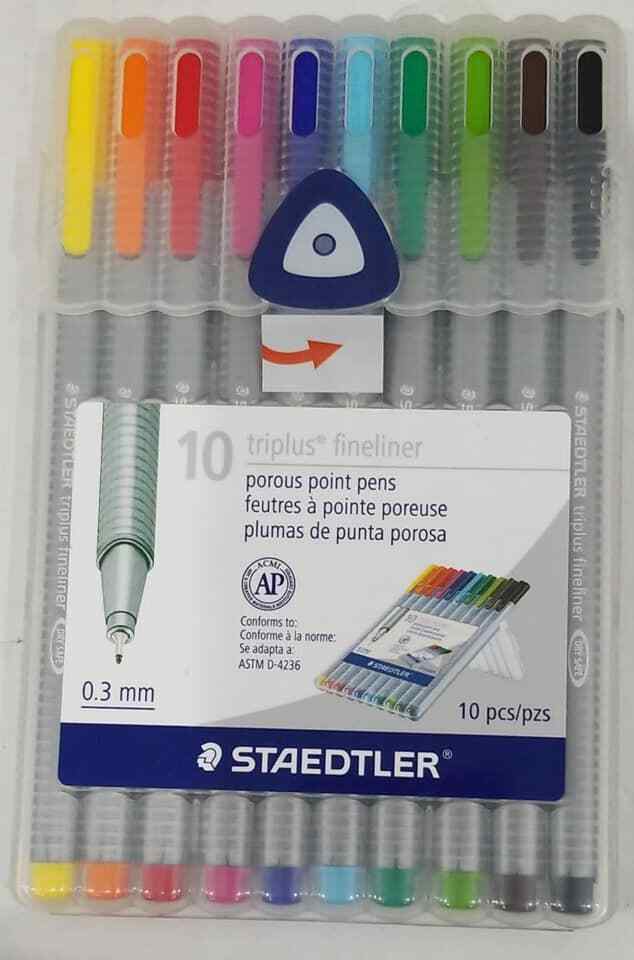 - Staedtler 10 Triplus Fineliner Porous Point Pens 0.3mm (LOC PEG-G-9)
