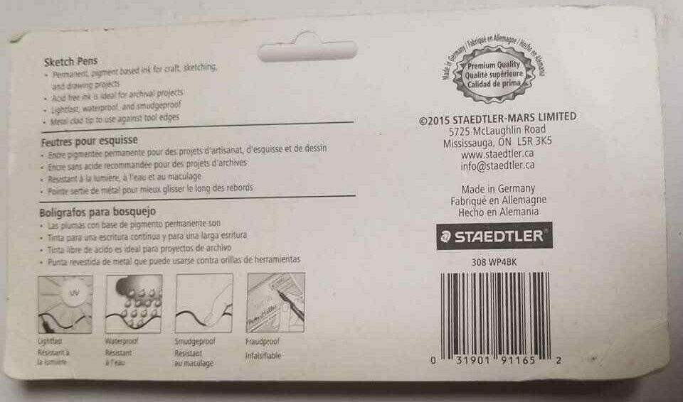 - Staedtler Mars Pigment Liner Sketch Pens 4 Pack 308 WP4BK (Peg G-9)