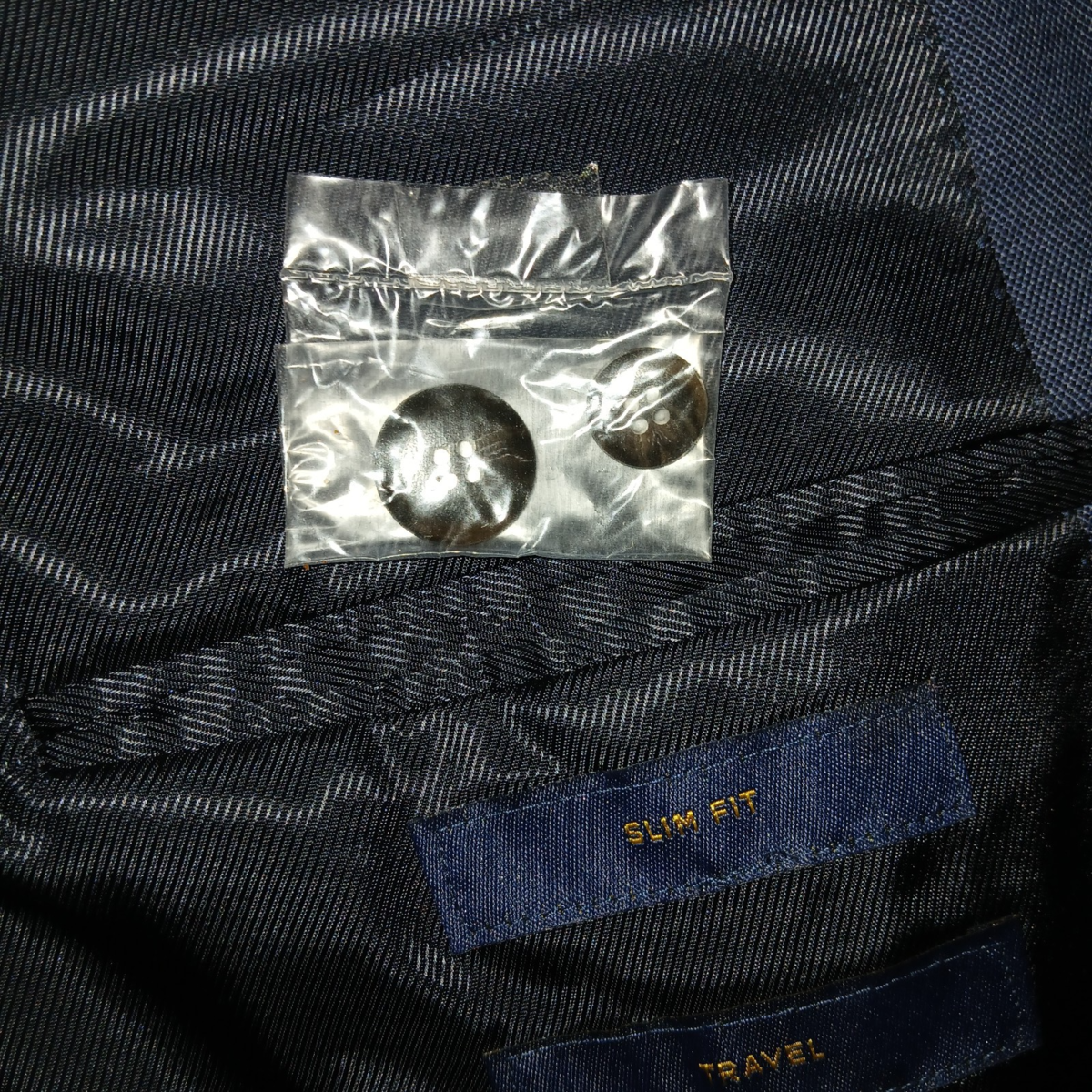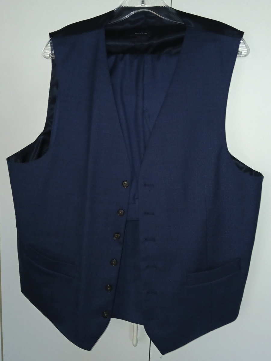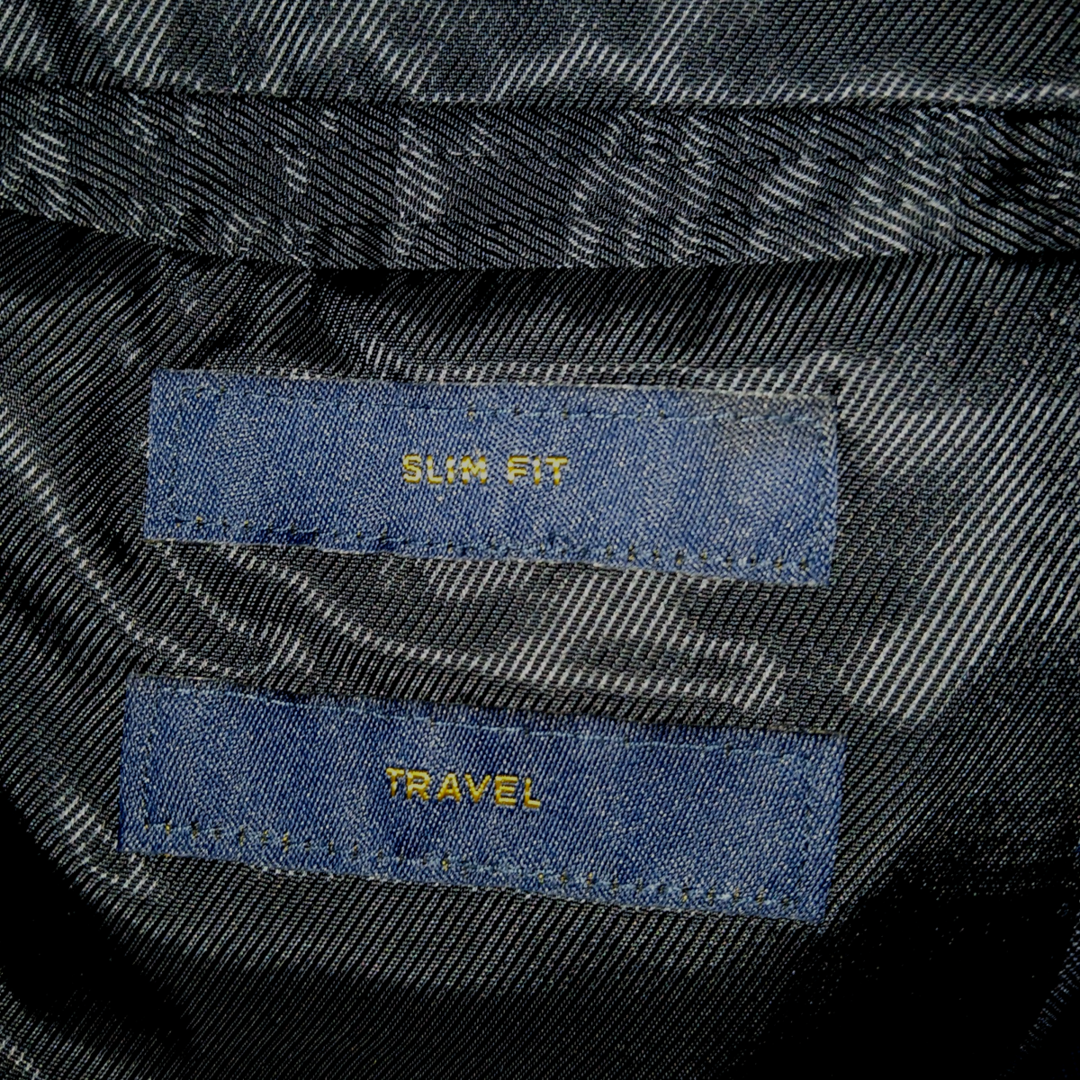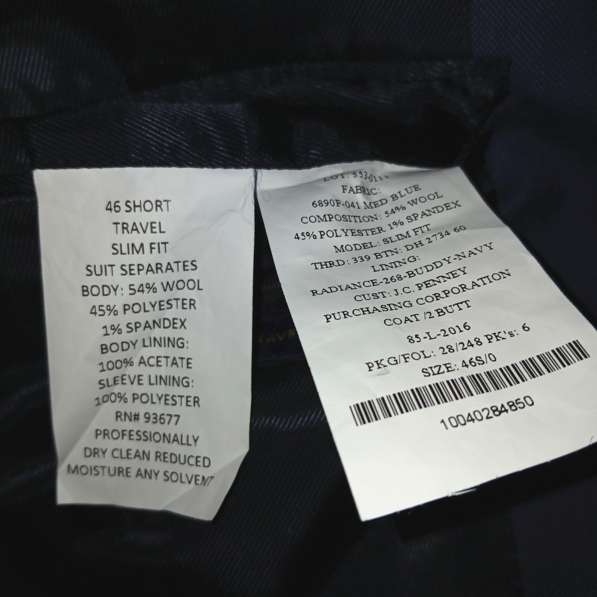 THIS IS A GREAT STAFFORD MEN'S SLIM FIT BLUE TRAVEL SUIT IN A SIZE 46 SHORT. IT IS IN EXCELLENT, WORN ONCE, CONDITION.