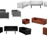 - Stainless Exo-Frame Leather French-Swiss Sofa-Loveseat-Chair Br Blk Off-White Gy