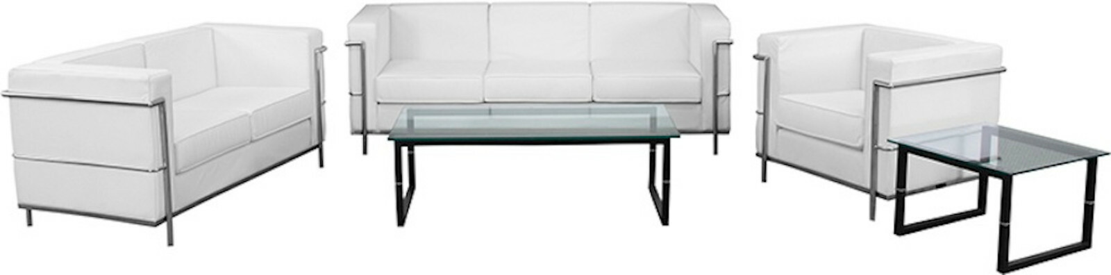 Stainless Exo-Frame Leather-Soft* French-Swiss Sofa, Loveseat and Chair