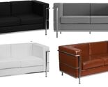 - Stainless Exo-Frame Leather-Soft* French-Swiss Loveseat Black Brown White Gray