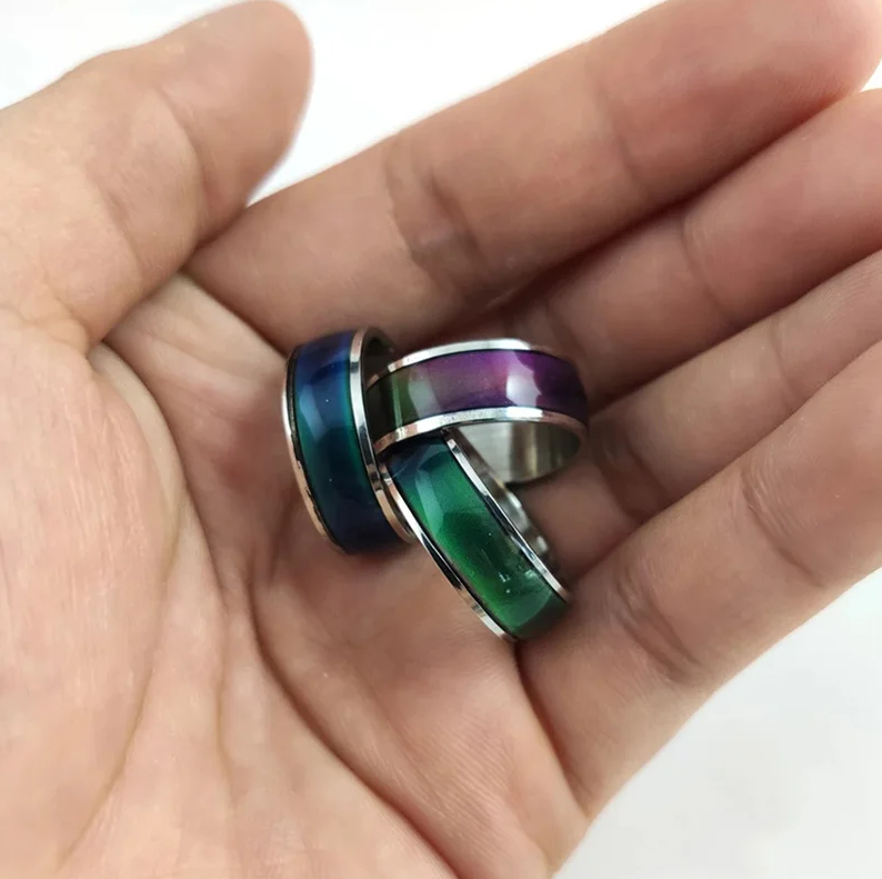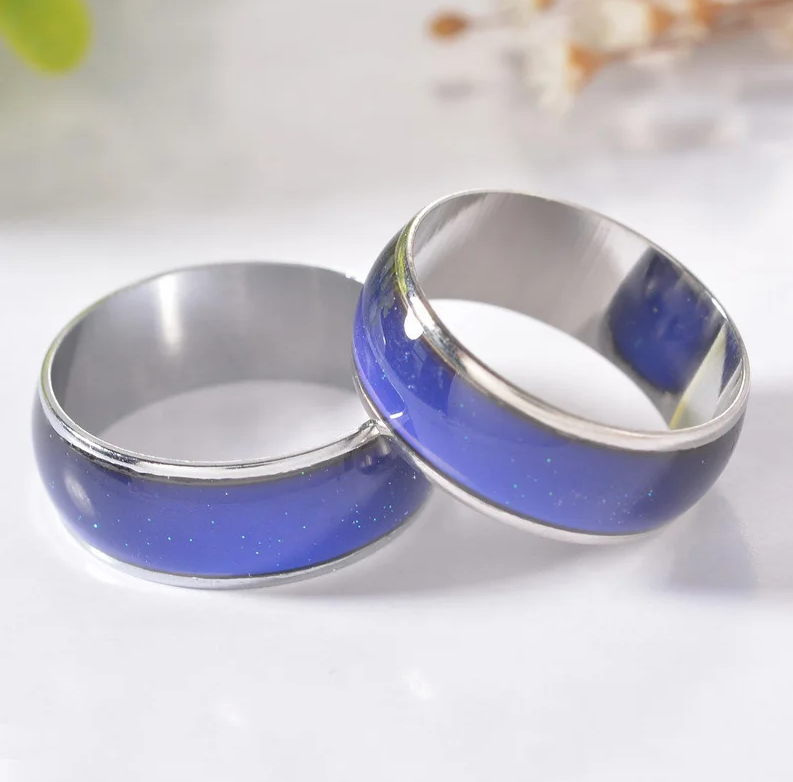 Stainless Steel 6mm Thin Glazed Tone Color Changing Temperature Mood Ring
