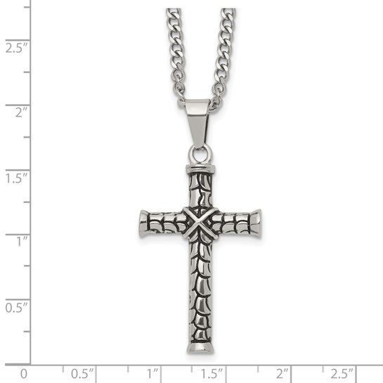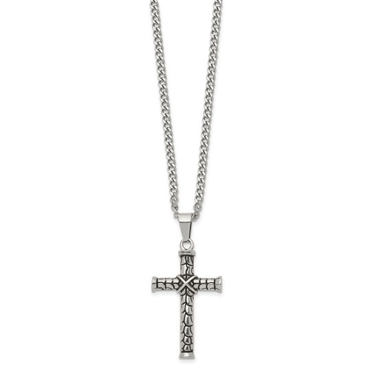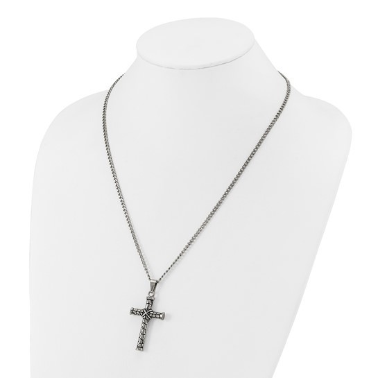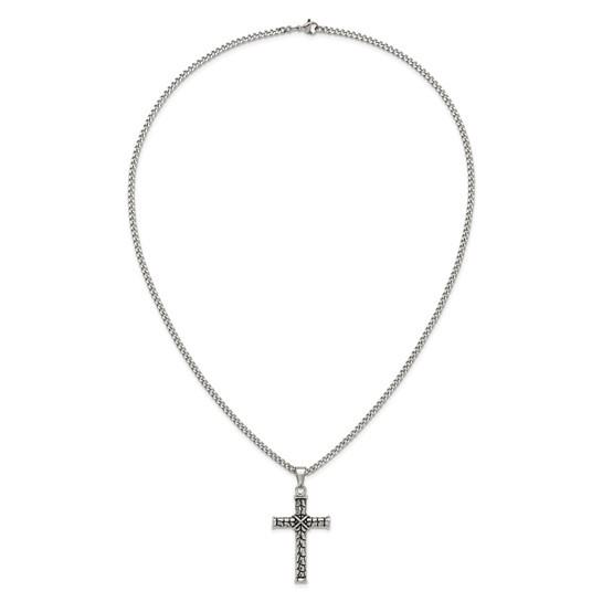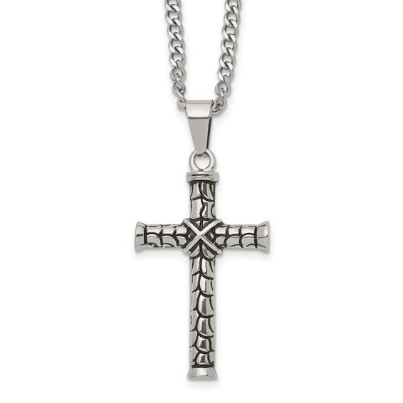 - Stainless Steel Antiqued & Polished Cross Pendant Necklace