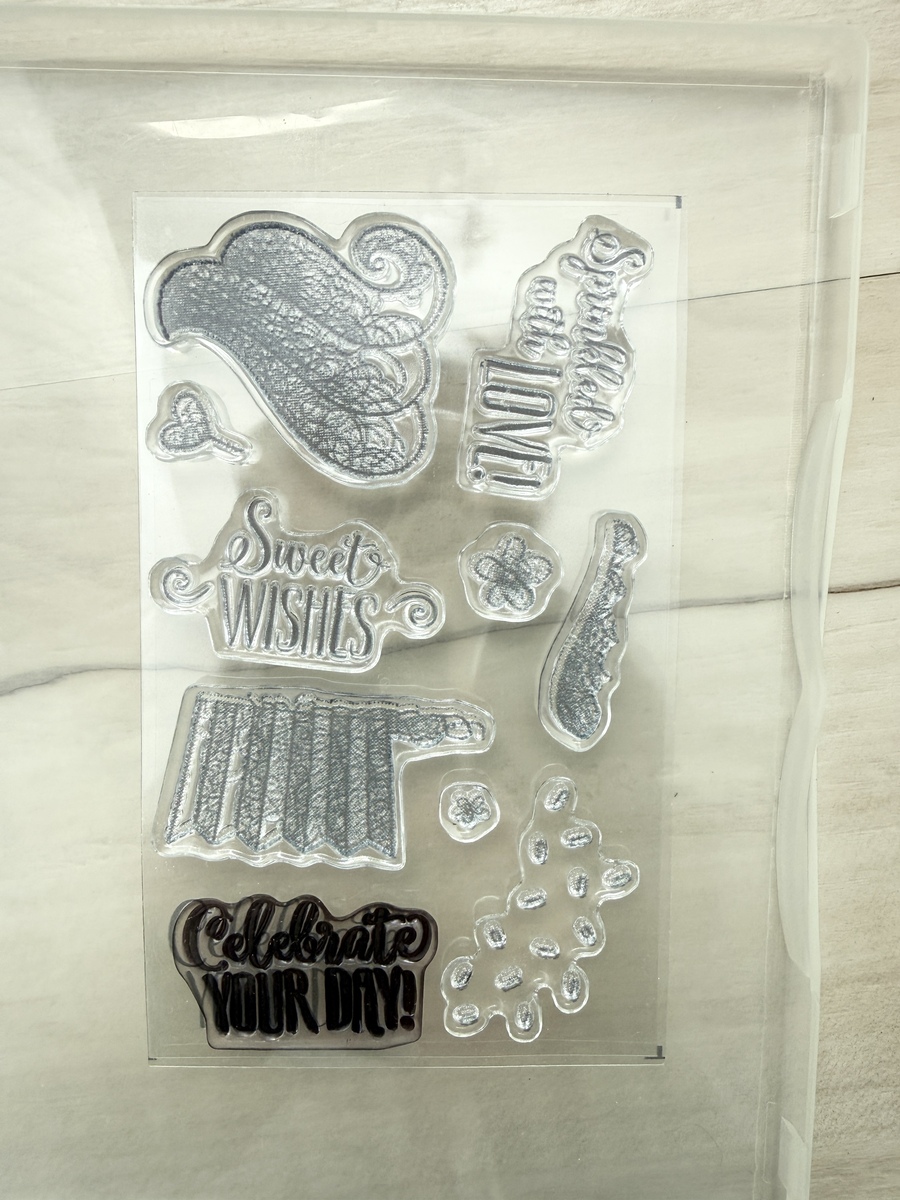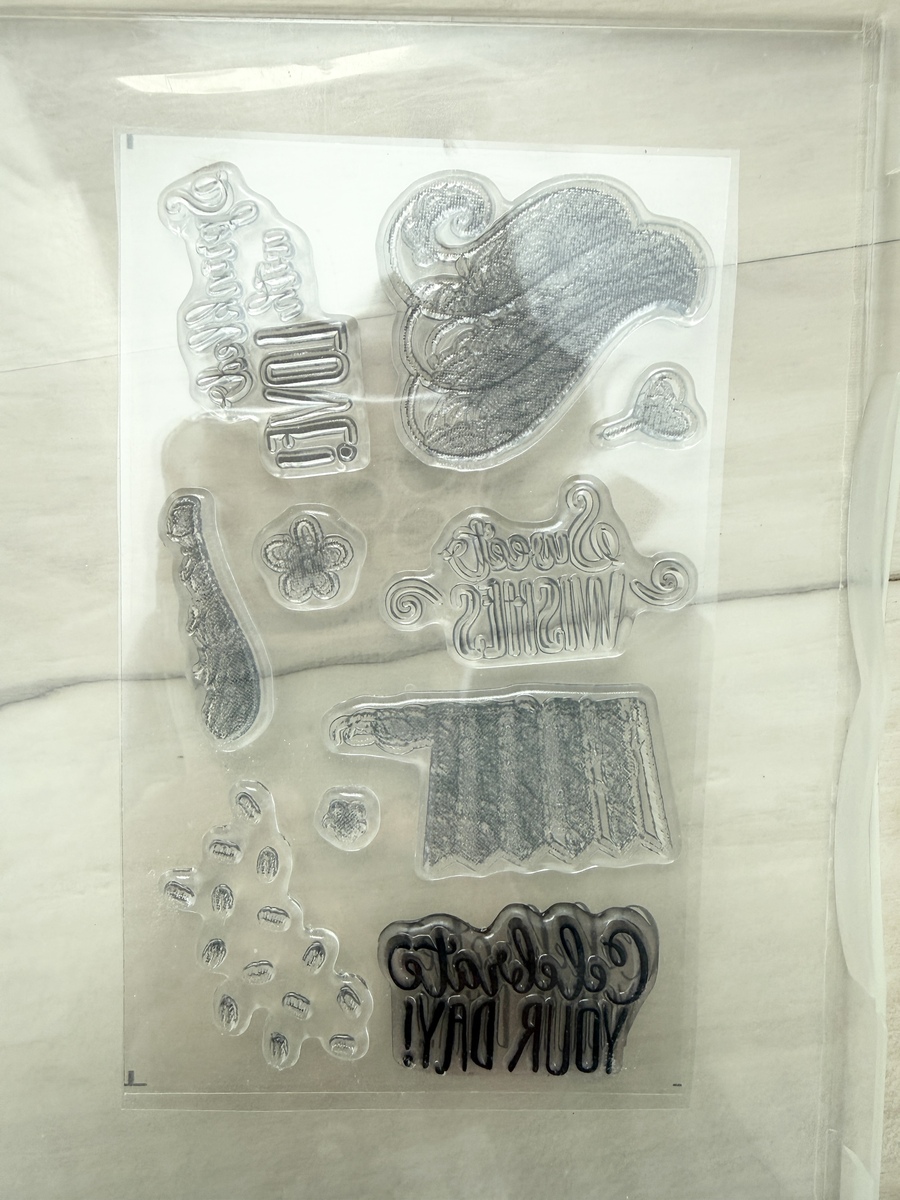 This whimsical Hello cupcake clear stamp set by Stampin' Up has been gently used. These 10 stamps will add a wonderful touch to a celebration, birthday or thank you card. Use these unique images in a scrapbook, mini album, planner, journal or other paper crafting project. Wonderful set! Make your own lovely cards, favors, journal pages, and treat boxes. This stamp was featured in the 2019 Sale-A-Bration.