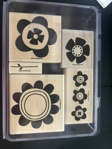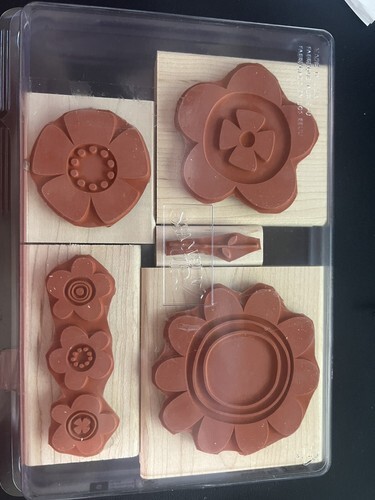 - Stampin' Up! Retired Big Blooms Flowers Wood Mount Rubber Stamp Set - Set of 5