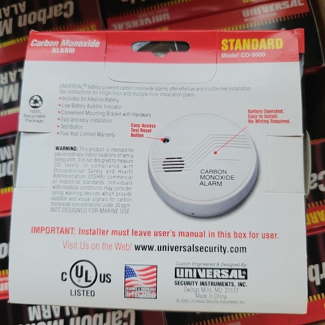 - Standard Universal Carbon Monoxide Alarm General Purpose Model Cd-9000 Lot of 24