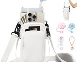 Portable: Adjustable Shoulder Strap and Multiple PocketsThe stanley cup accessories stanley cup holder with strap features two adjustable shoulder straps: a long padded sling strap and a short shoulder strap, catering to various body types and offering multiple carrying options. The sturdy shoulder strap clips ensure a secure fastening. Additionally, the holder boasts two front pockets, providing ample space for essentials like your phone, cash, cards, and keys, adding convenience to your outings.