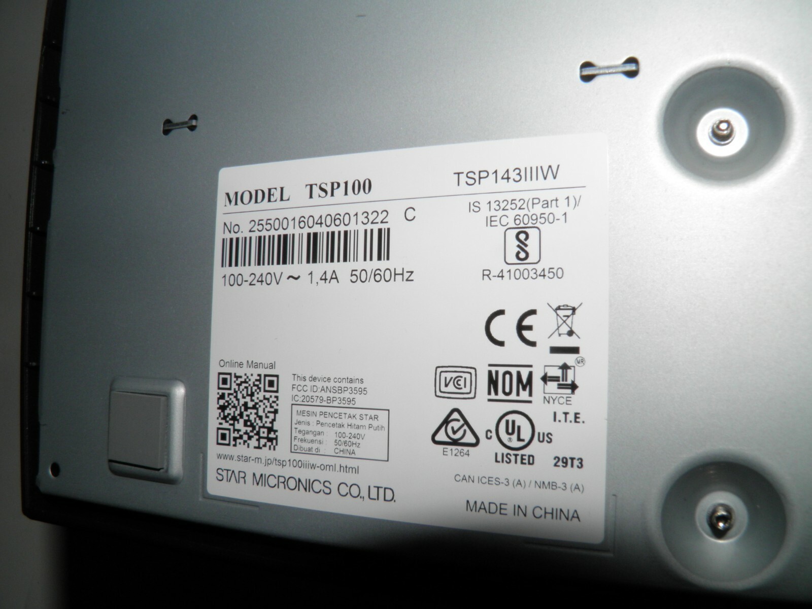 - Star TSP100 Thermal POS Receipt Printer TSP143IIIW w power cord WI-FI
