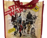 Officially licensed Star Wars tote bag featuring retro comic-style artwork of classic characters and ships. The front and back depict fan favorites like Princess Leia, Han Solo, Chewbacca, Luke Skywalker, Darth Vader, R2-D2, C-3PO, Yoda, Boba Fett, and more. Designed with bold red handles and trim, this reusable shopper is perfect for groceries, conventions, or as a collectible display piece.