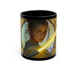This black ceramic mug features a design of the legendary Star Wars character, Bastila Shan, known for her battle meditation. Perfect for Star Wars fans looking to start their day with a boost of Force power. Ideal for adult Star Wars enthusiasts, great for gifting on birthdays, holidays, and special occasions.