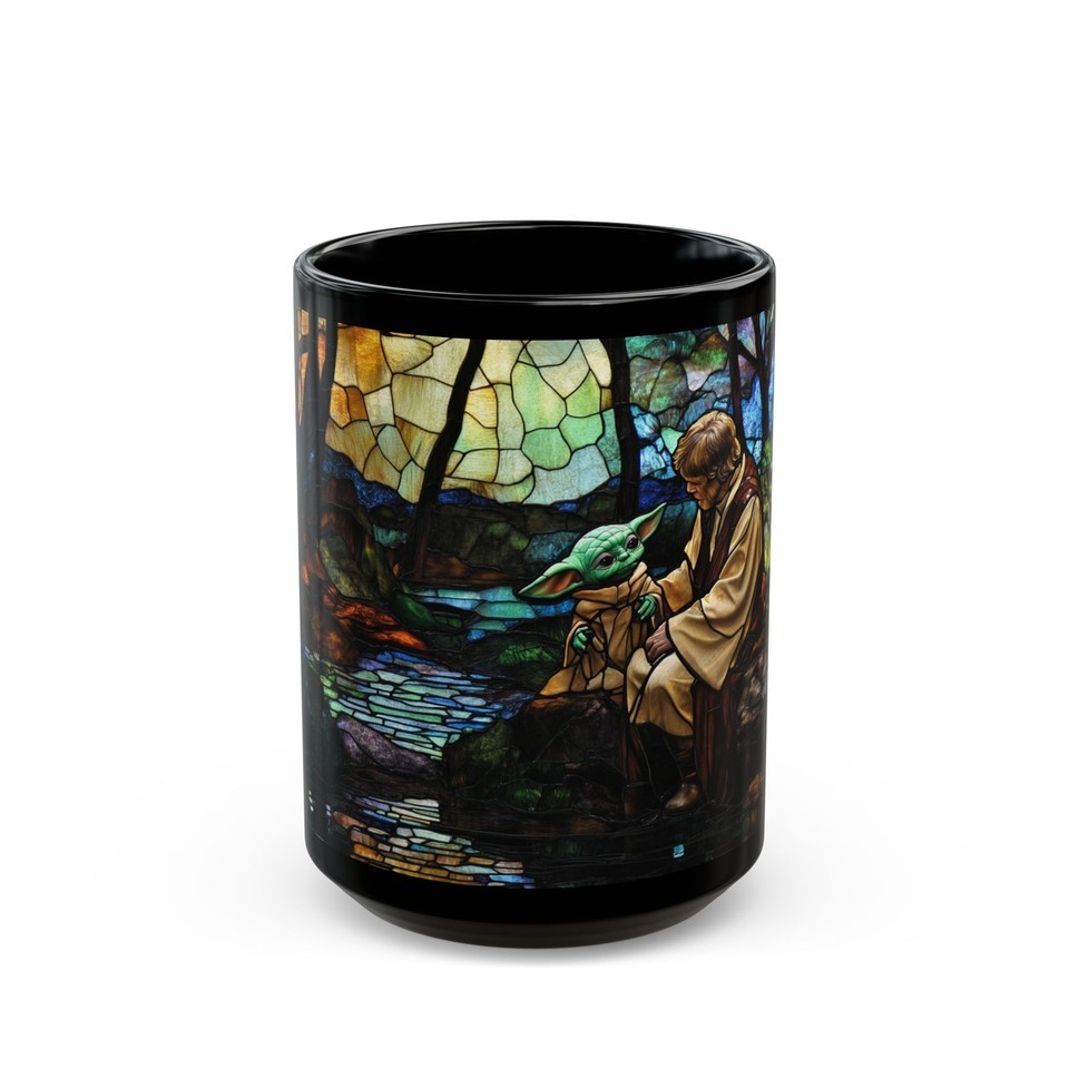 - Star Wars Yoda Luke Skywalker Stained Glass Black Mug, Coffee Cup, Tea Mug
