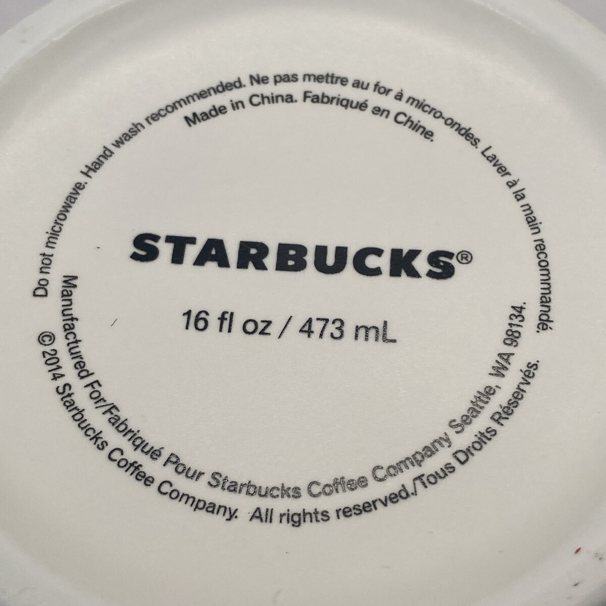- Starbucks 2014 White Coffee Mug Matte White No Spill Base