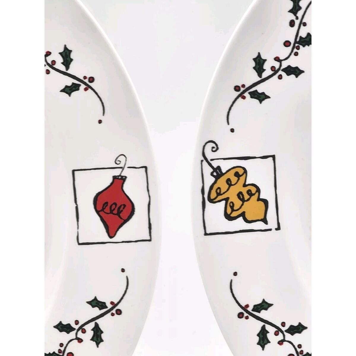 This Starbucks Christmas Dinner Plate 4 Piece Set is a rare vintage find from the year 2000. Both microwave and dishwasher safe. The set features a beautiful multi-color design of a Christmas tree and ornaments that will add a touch of holiday spirit to any meal. These original plates were manufactured in China by Starbucks, making them a unique addition to any collectible or advertising item collection. Perfect for those who appreciate festive tableware, this set is sure to impress.