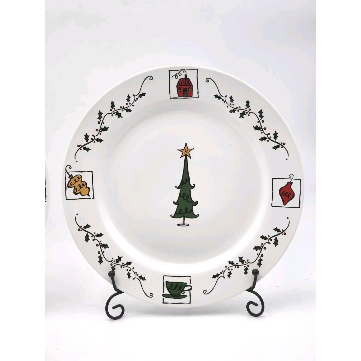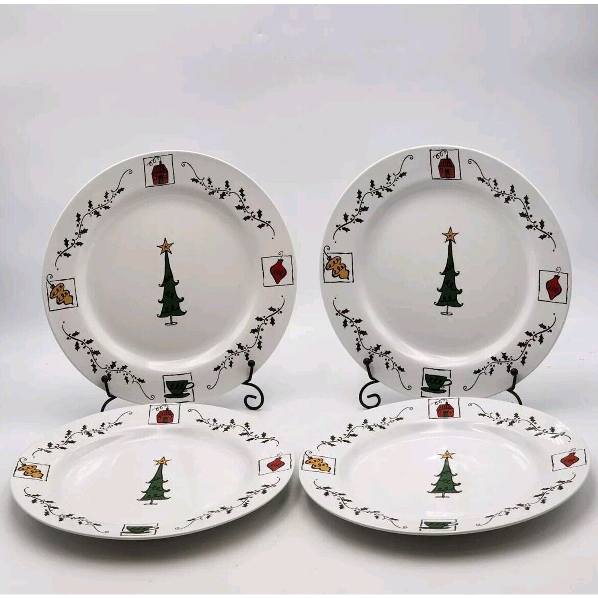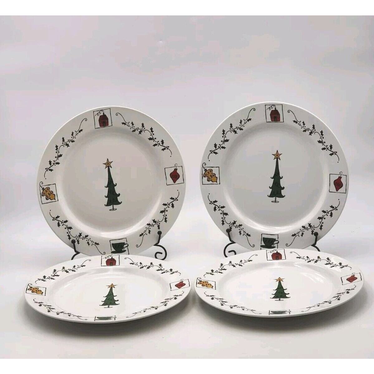 - Starbucks Christmas Dinner Plates 4 Piece Set 10.75" Rare 2000 Tree & Ornaments
