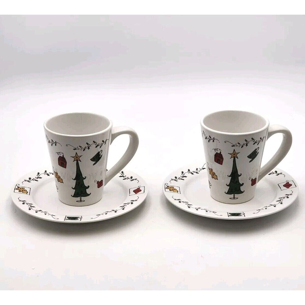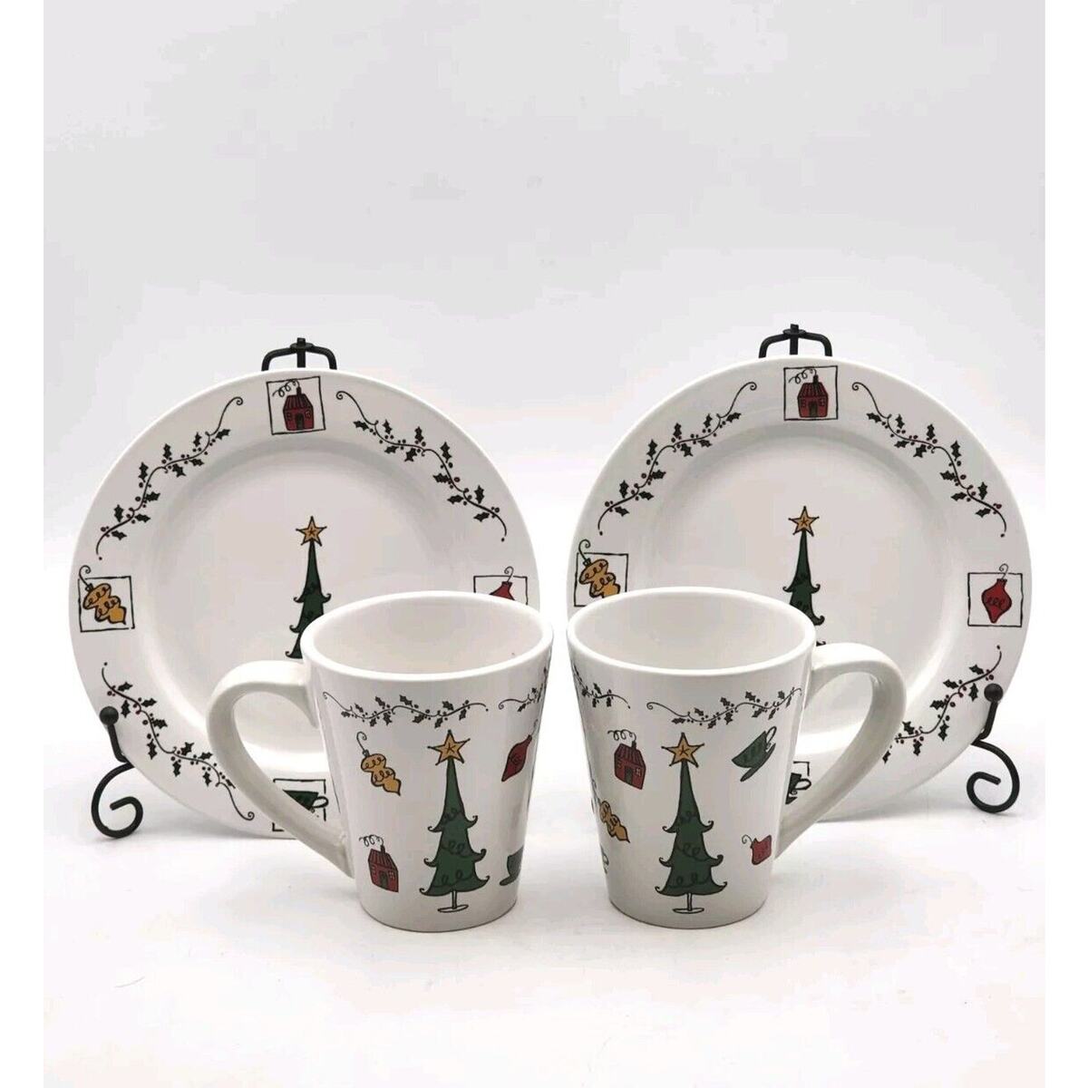 Starbucks Christmas Mug & Dessert Plate 4 Piece Set Rare 2000 Tree & Ornaments