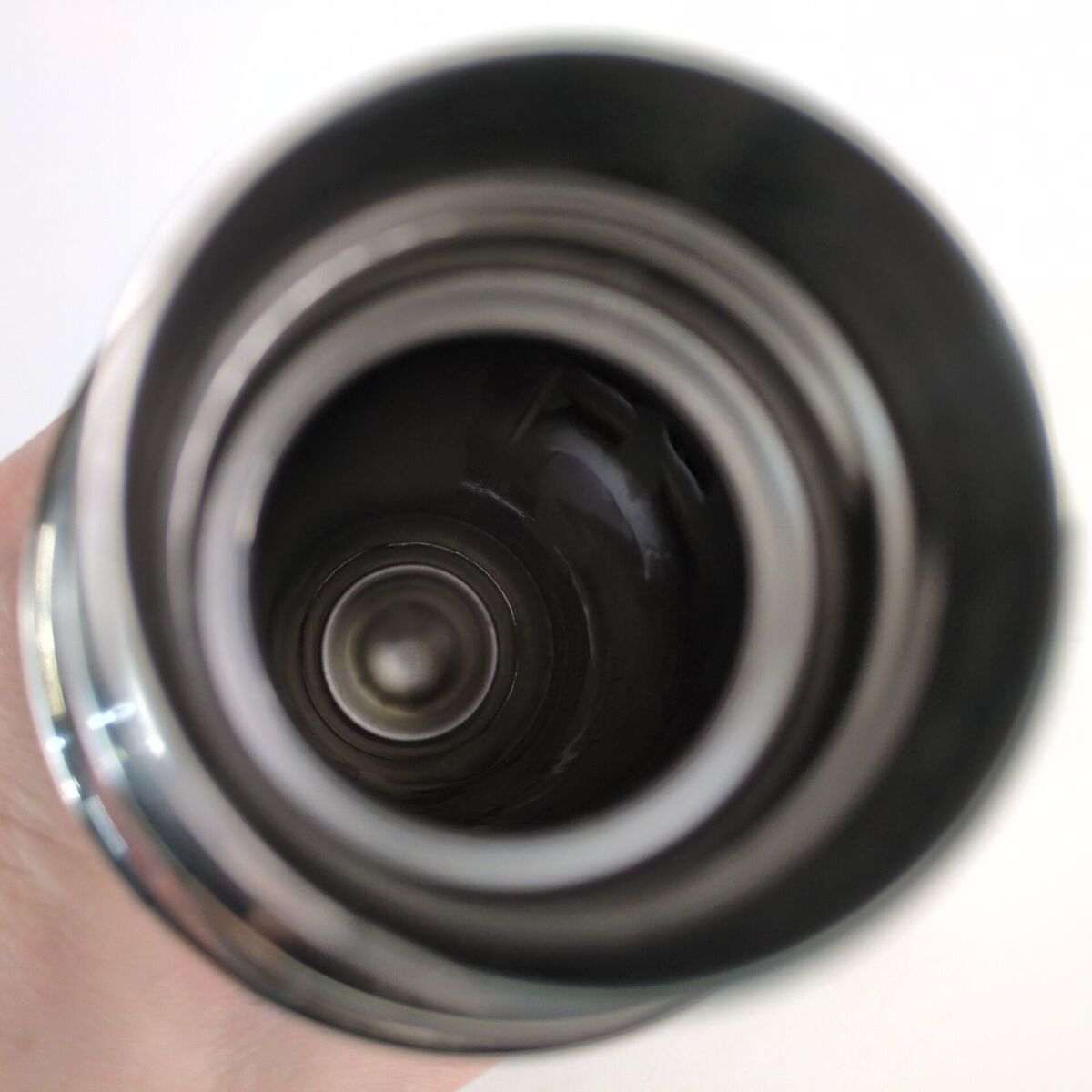 I did put it through my dishwasher (I missed the hand wash instructions - oops), which left some spots on the rubber base. The condition is as shown in the photographs. I did test it using some distilled water - the open/close valve worked without leaks. I shook it and again, no leaks. The screw-on valve plastic parts do have some coffee stains as shown. The top cap has a small dent.