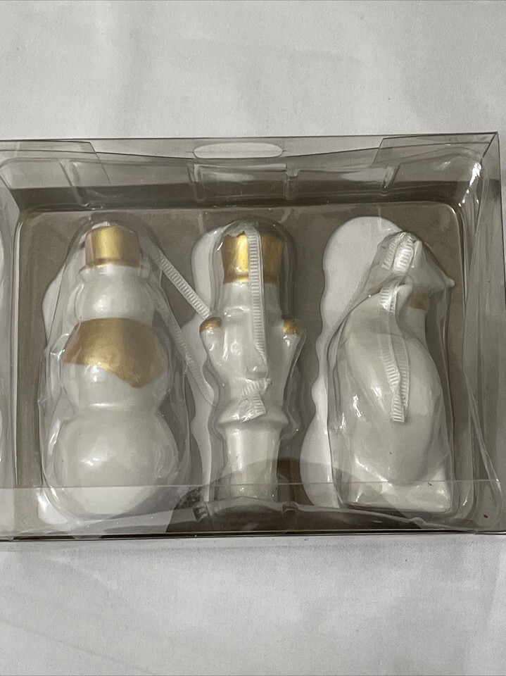 Starbucks Ornaments Christmas 2012 White Gold Fox Nutcracker Snowman in Box