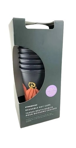 - Starbucks ~ Reusable Hot Cups - 6 Pack ~ PUMPKINS w/Glow in Dark Lids ~ 16 oz.