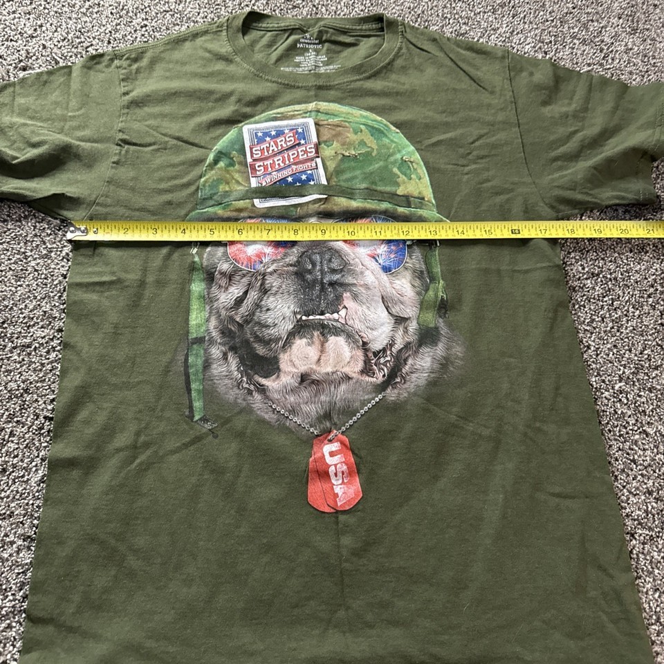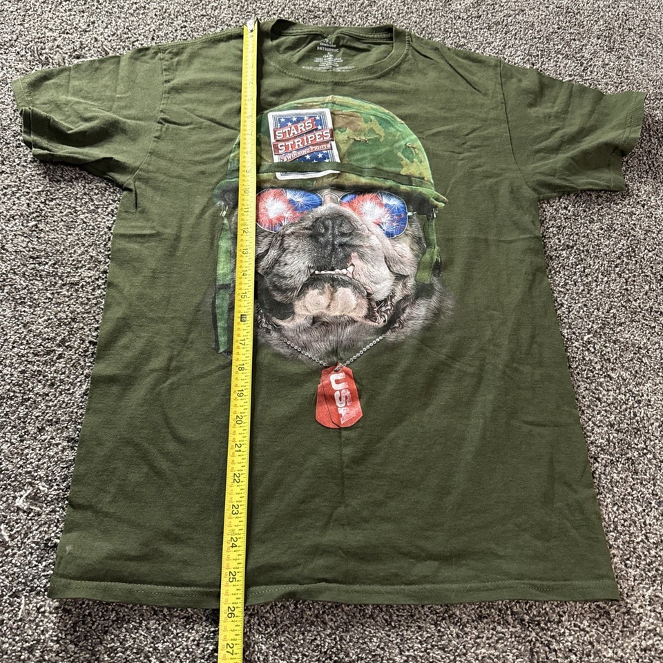 - Stars Stripes Winning Fights Bull Dog Shirt (S) Small 34-36 Patriotic Green
