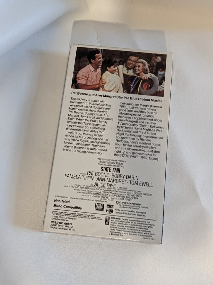 In vendita e una nuovissima copia VHS di State Fair 1988 Pat Boone Ann-Margret Bobby Darin Alice Faye Nuovo sigillato