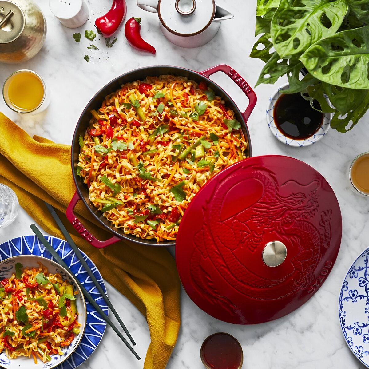 - Staub 3.75-Qt Cast Iron Essential French Oven with Dragon Lid – Cherry Red