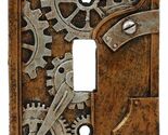 Steampunk Clockwork Gearwork Design Wall Light Switch Plate Gold Background