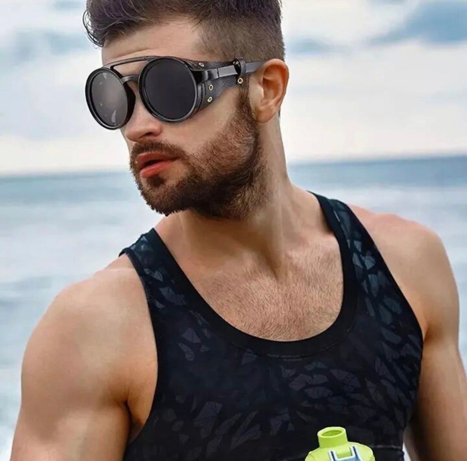 ? Stylish and Trendy: Steampunk style round sunglasses with leather side glasses are perfect for fashion-forward men and women.