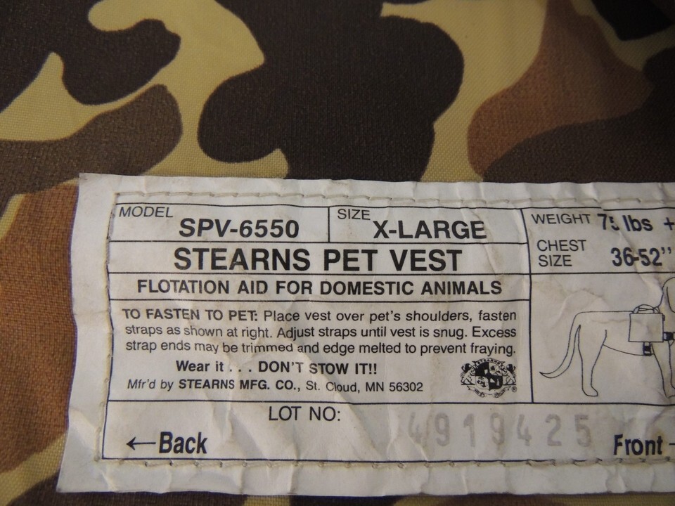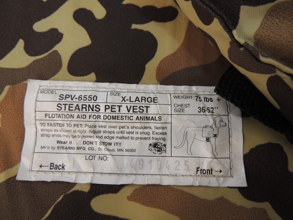 - Stearns Pet Vest Model SPV-6550 Size X-Large 75 lbs. 36-52" Chest 50781
