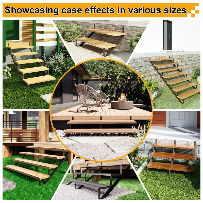 Heavy-Duty Load Capacity: Engineered to support up to 500 lbs, these metal stair risers provide reliable strength and stability for a wide range of outdoor stair projects.