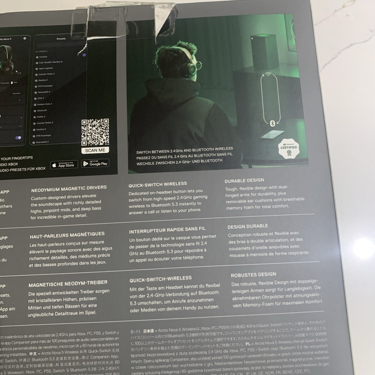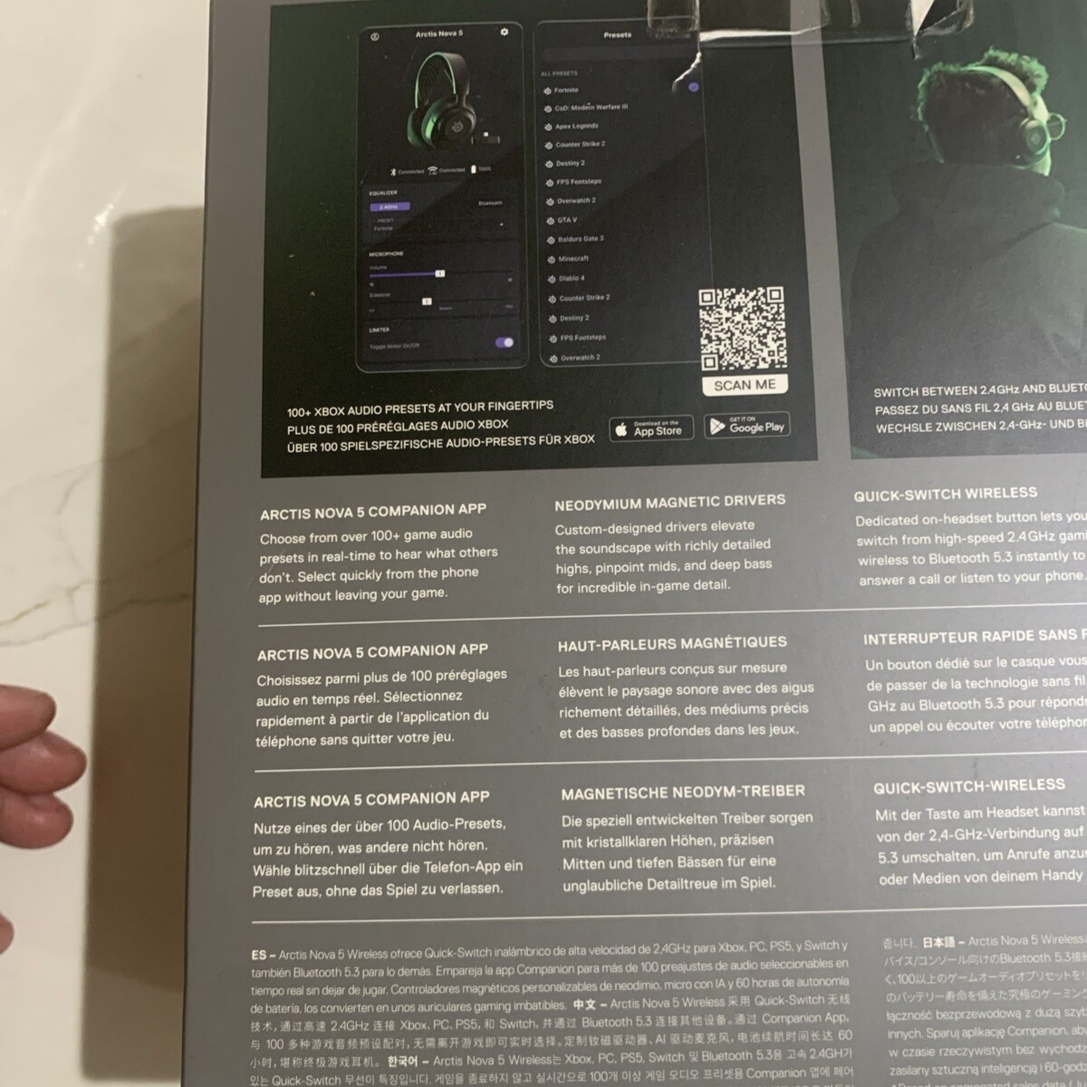 Please look at photos for the condition of the box. The SteelSeries Arctis Nova 5X Wireless Gaming Headset in Black is a high-quality audio solution designed specifically for gaming enthusiasts. With its ear-cup design and wireless connectivity, it offers a comfortable and convenient way to immerse yourself in your gaming experience. Featuring the latest technology from SteelSeries, this headset delivers exceptional sound quality and performance, making it a great choice for serious gamers looking to elevate their setup.