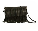 Primary image for Stella Rittwagen Black Leather Boho Hippie Shoulder Bag with Fringes Handbag
