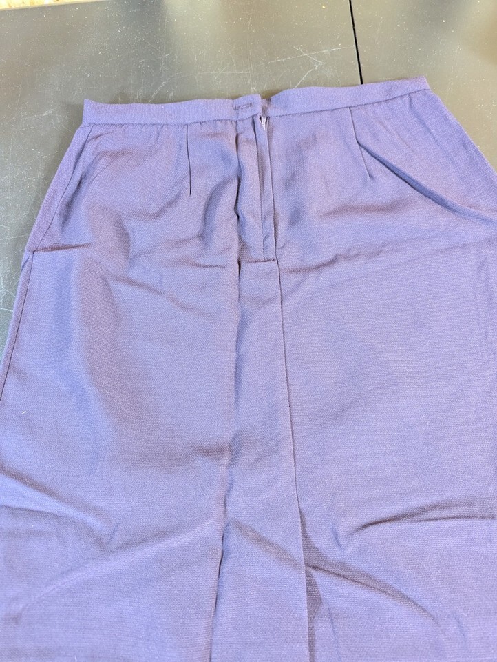 The Stephanie Andrews Size 12 Polyester Skirt Suit is a stylish and versatile garment designed for formal and business occasions. Made from 100% polyester with a polyester lining, this two-piece suit features a solid purple color and a classic notch lapel style on the jacket. With a long sleeve, single-breasted jacket and a knee-length skirt, this suit offers comfort and a sophisticated look. The suit is recommended for all seasons and can be dry cleaned for easy maintenance. Designed by Stephanie Andrews, this suit exudes quality and elegance in every detail.