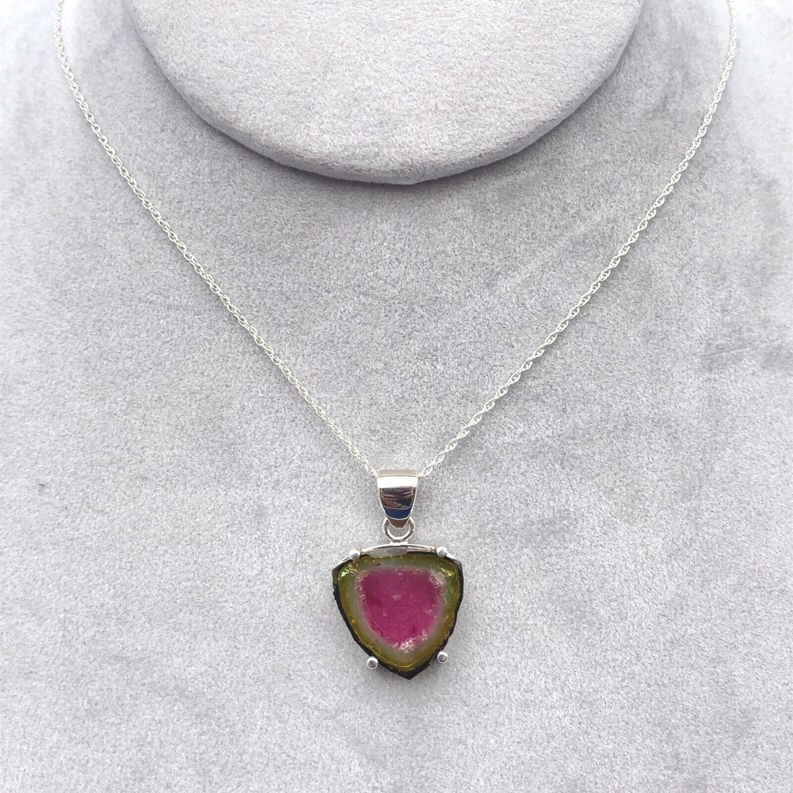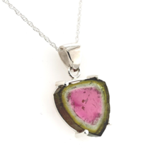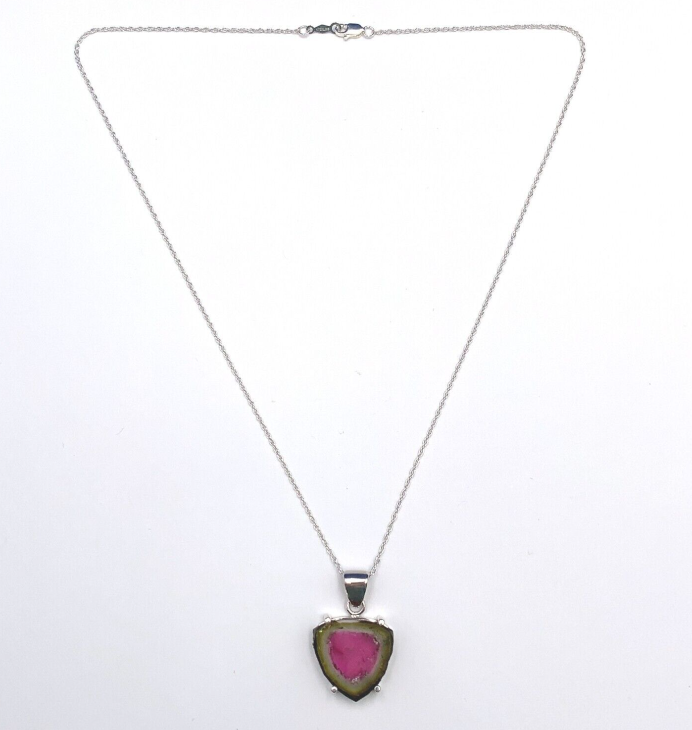 - Sterling 10.83ct Watermelon Genuine Natural Tourmaline Crystal Pendant (#J6172)