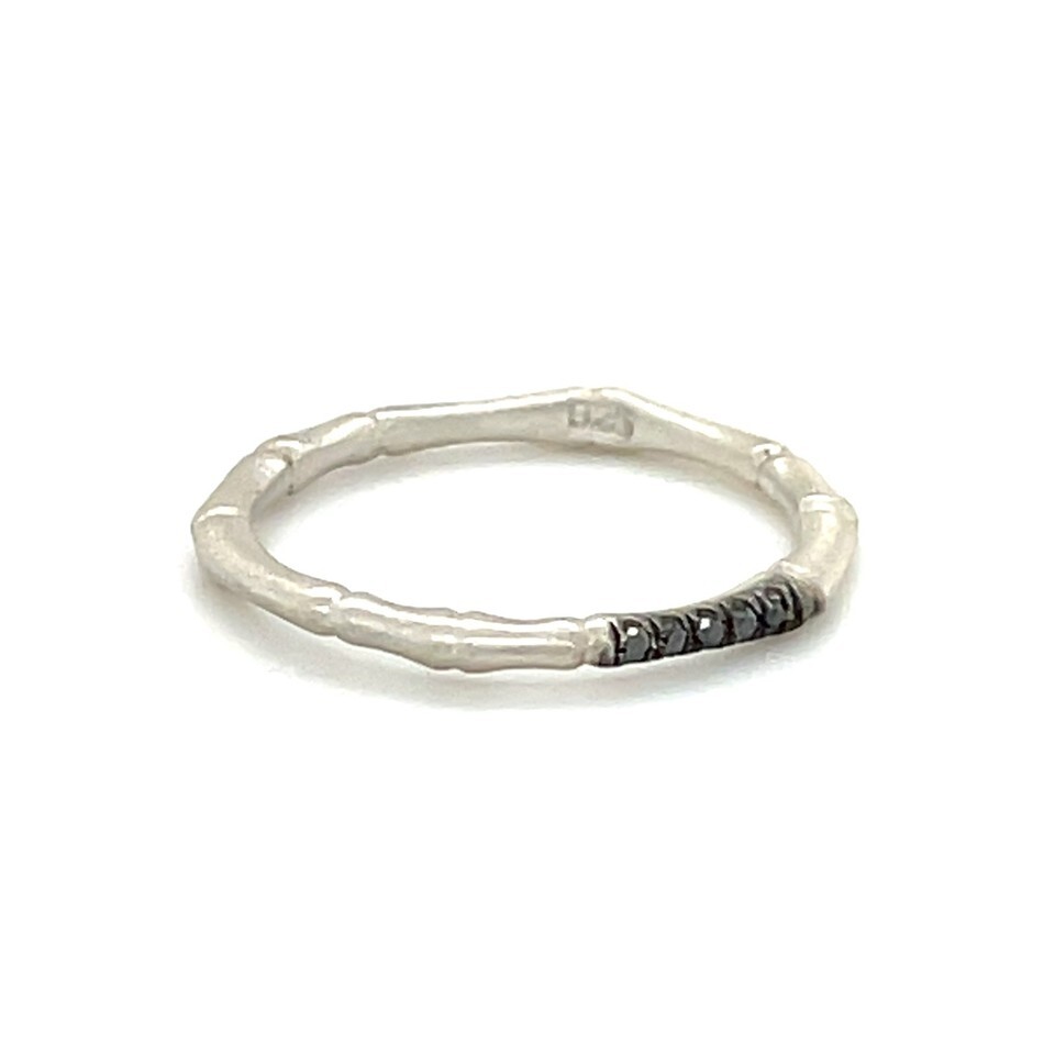 - Sterling 18k White Vermeil Bamboo 2 mm Ring w/ 0.05 TCW Black Diamonds Sz 5.50