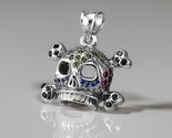 Sterling Silver 3D Skull and Bones Color CZ Pendant Gothic Sugar Skull Necklace