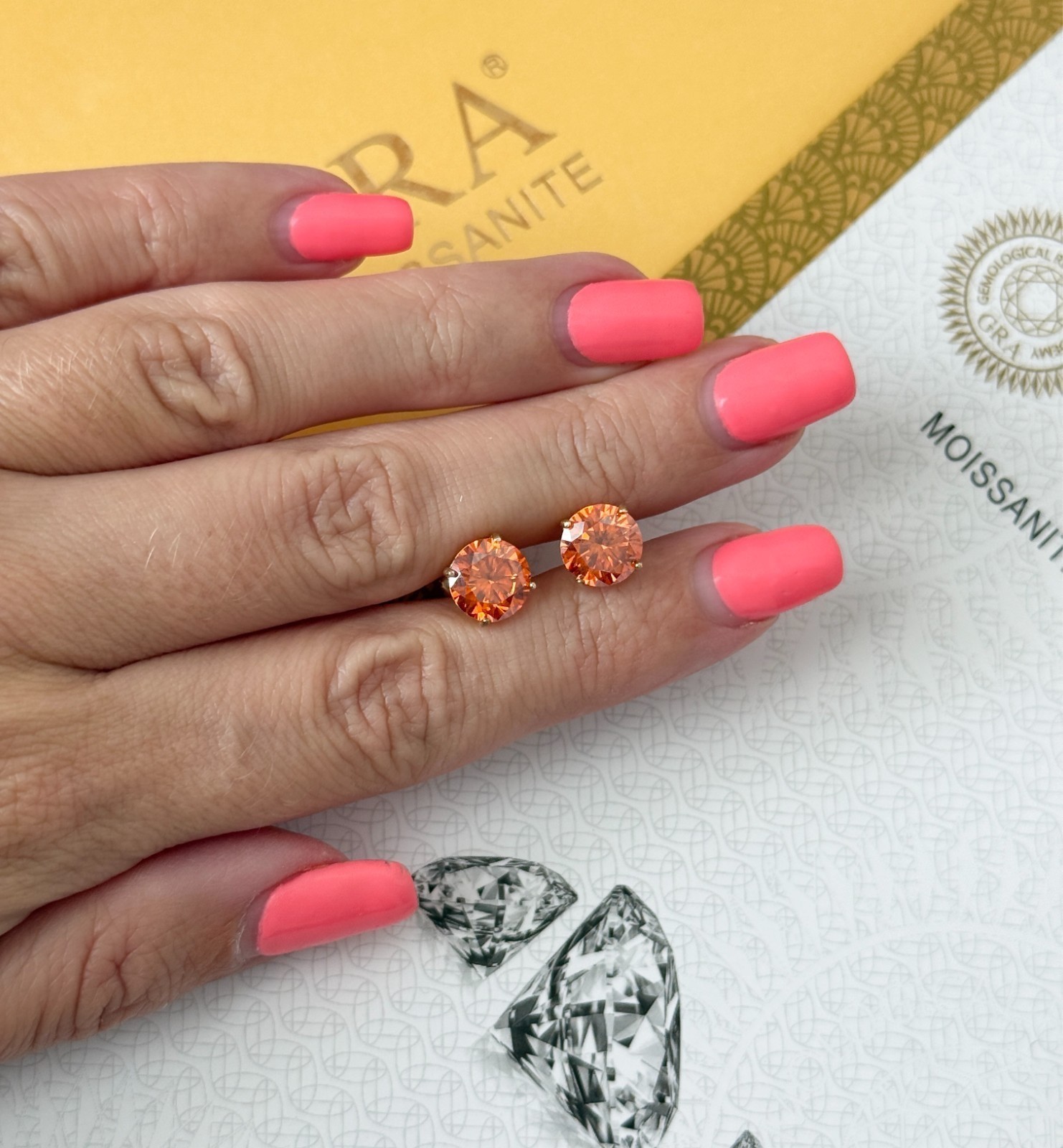 - Sterling Silver .925 Round Orange Moissanite Screw Back Stud Earrings 8mm GRA