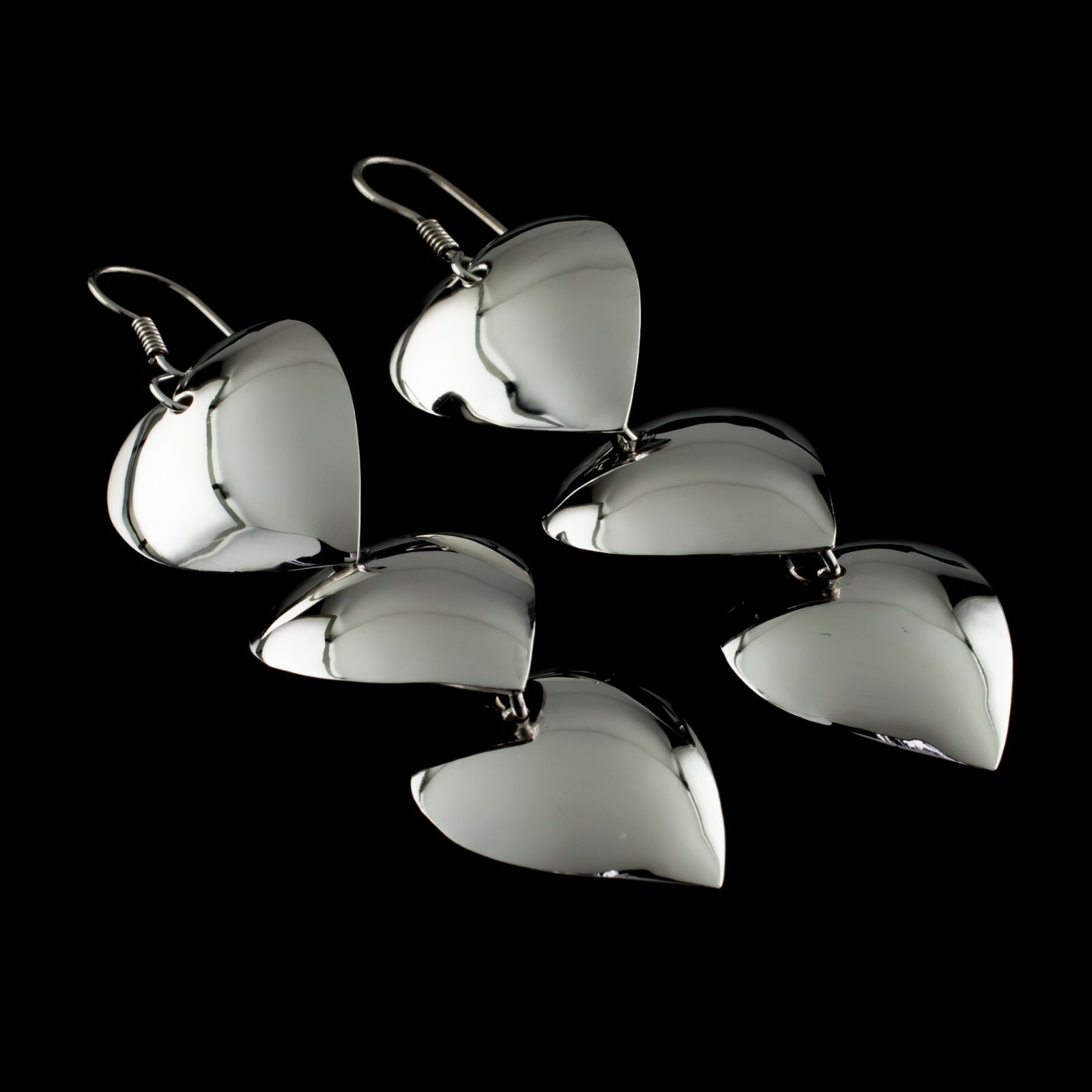 Sterling Silver .925 Three Heart Drop Earrings
