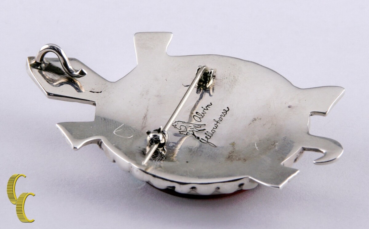 - Sterling Silver Alvin Yellowhorse Inlay Turtle Pendant Brooch Lapis, Pearl, Wood