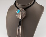 - Sterling Silver Bolo Tie with Turquoise Accent Braided Leather Strands 36"
