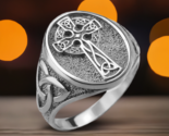 - Sterling Silver Celtic Cross Oval Signet Ring Trinity Knot Shoulders Unisex