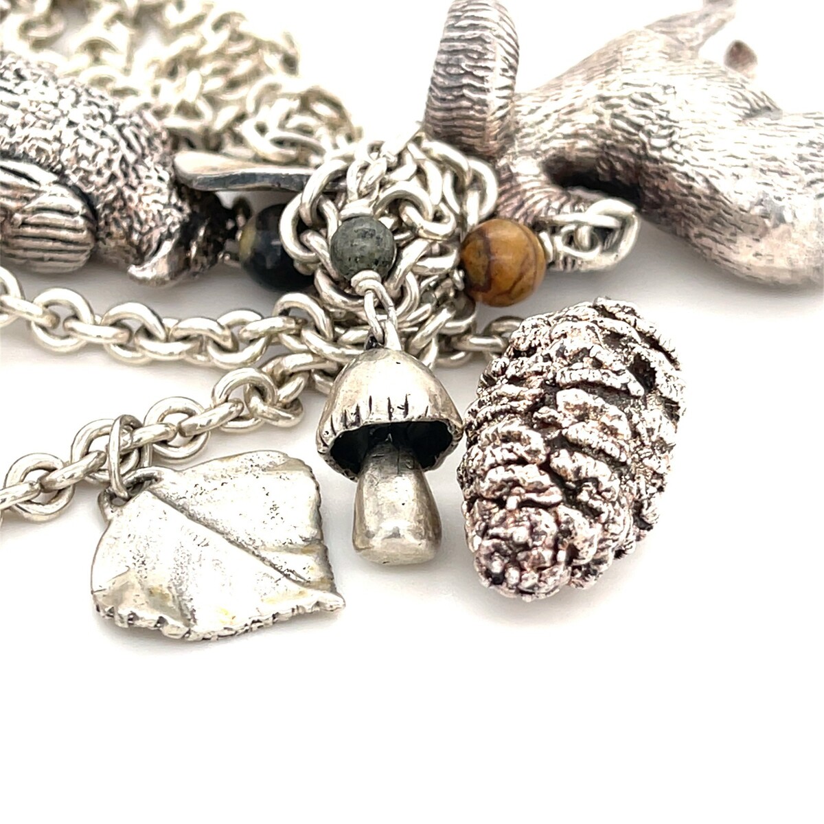 Sterling Silver Chain Necklace with Bundled Woodland Critter Pendant 30"