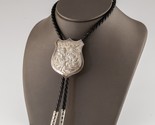 - Sterling Silver Etched Shield Bolo Tie with Braided Leather Strap