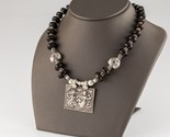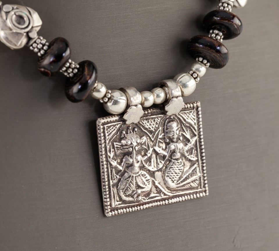 - Sterling Silver Ganesha and Shiva Pendant with Petrified Wood Beads Gorgeous 18"