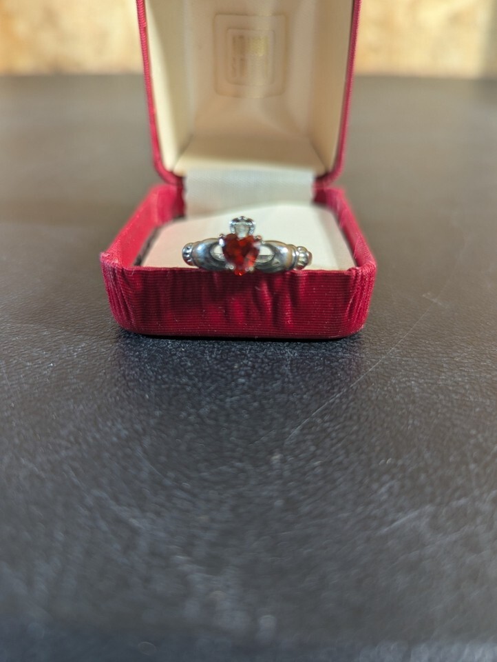 - Sterling Silver Garnet Irish Claddagh Ring Size 7.75 - 2.8 Grams +